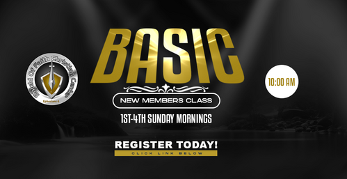 Basic Class is an introduction to our church family and is designed to clearly explain who and what our church is. This class covers Our Salvation, Our Statements, Our Strategy and Our Structure. You will hear the history of Shield of Faith Christian Center, learn how living the 4 biblical purposes are necessary in order to fulfill God’s purpose for your life, and discover plans for the future of Shield of Faith Christian Center. At the end of Basic Class you will have the opportunity to fill out, sign and submit to be a part of any Faith Team Ministries or you can wait at another time.
