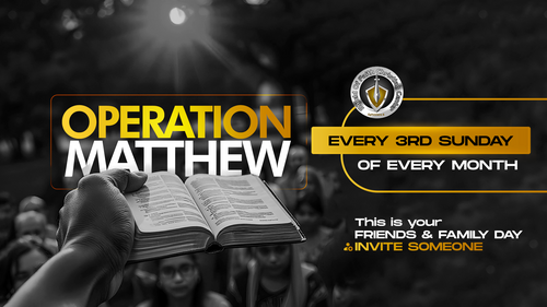 We believe that setting a Sunday apart every month as Operation Matthew Sunday will enhance the focus of members in the pursuit of this strategic soul winning outreach. In light of this, the third Sunday of every month has been set aside as “Operation Matthew Sunday”, where every member shall be expected to prayerfully come along to church with an invitee, especially an unbeliever, a backslidden Christian or a challenged believer that requires divine intervention.